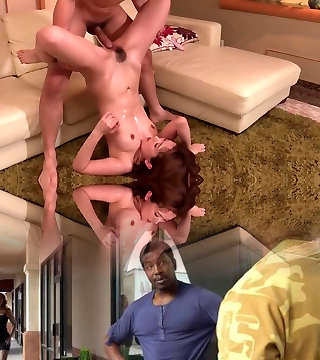 Asian guy licks and fucks steaming black slut's tight cootchie in li