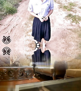 Fuck Thai Teen Barely Legal+ Asian Student in uniform handjob blowjob then get fuck cum on skirt