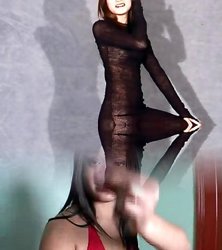 Japanese in a sheer black dress flashing tits and pussy