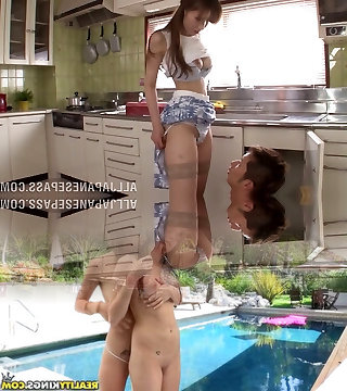 Kinky Japanese Cowgirl With Long Hair Nailed In the Kitchen