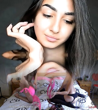Erotic Japanese babe Angelina Belov in stockings riding a cock