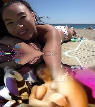 Her lil' shiny bikini comes off so the Asian girl can fap