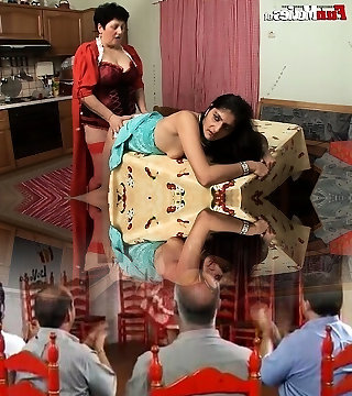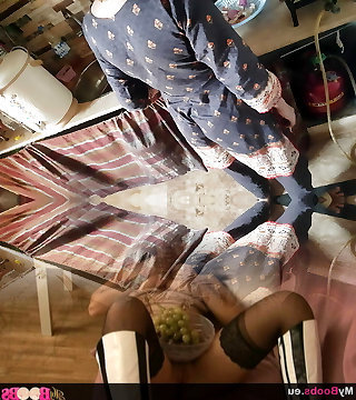 Coercing his wifey to make love in the kitchen!and sucking holes!