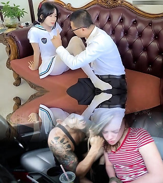 Chinese diminutive babe with a massive butt has sex with her boss