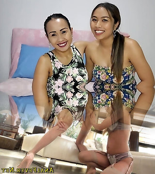 Lezzie Thai MILF GFs lick and strapon