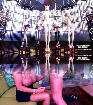 Fishnet-wearing chicks give a dt together
