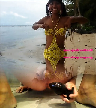 Ameteur Lil' Thai Teenie Heather Deep day at the beach gives deepthroat